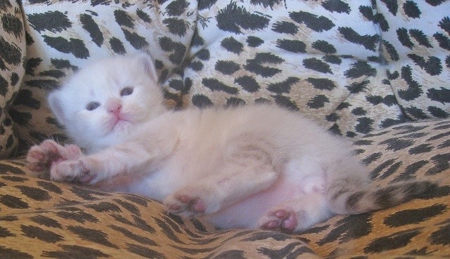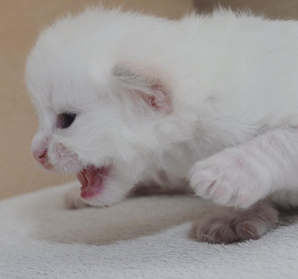 im straszy kociak tym bardziej kolor ucha od nasady wysyca sie w rudy lub kremowy kolor w zalezności czy kocię jest czarne czy niebieskie .