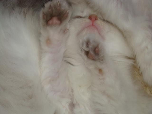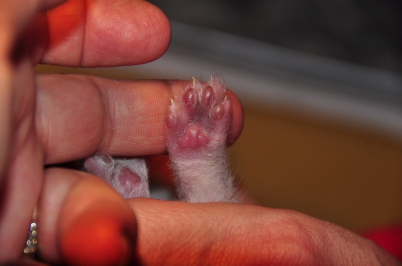 Poduszki z upływem tygodni ciemnieją( robią się jakby morelowe), a łapka nadal pozostaje jasna.